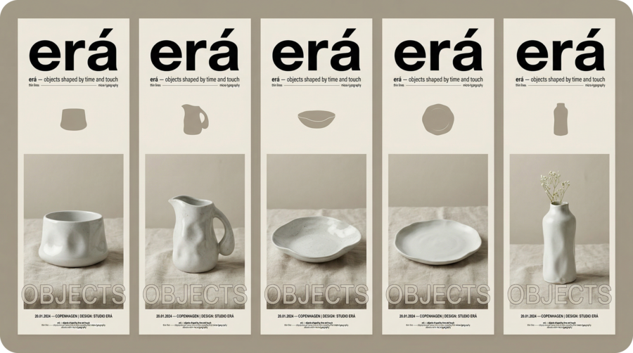 Концепция формы Объекты серии erá исследуют тему следов времени и человеческого прикосновения. Формы не идеализированы: они мягкие, немного деформированные, с деликатными вмятинами, создающими тактильность и ощущение «живого» объекта.