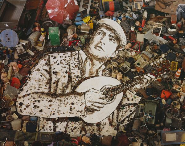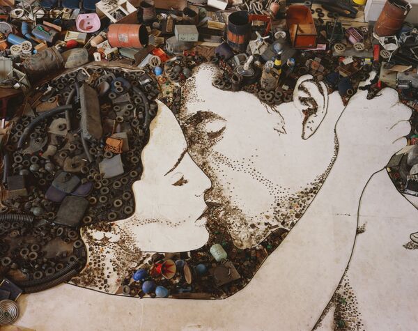 Работы из серии «Земля отходов» строятся на визуальном парадоксе. Издали они выглядят как реалистичные портреты, но вблизи распадаются на хаотичный набор отходов. Эта двойственность является центральным принципом композиции. Мунис использует мусор как точный инструмент, который позволяет создать иллюзию объёма, света, формы. Художник собирает мозаику из тысяч фрагментов, создавая гармоничное целое из хаоса.