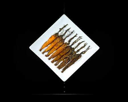 Лаура Летински фотографирует остатки трапезы — брошенные огрызки, засохшие дольки, смятые салфетки, липкие пятна — и превращает их в интимную, меланхоличную поэтику «после». Эти работы — о том, что остаётся после действия, и как эти остатки хранят следы времени и человеческого присутствия.