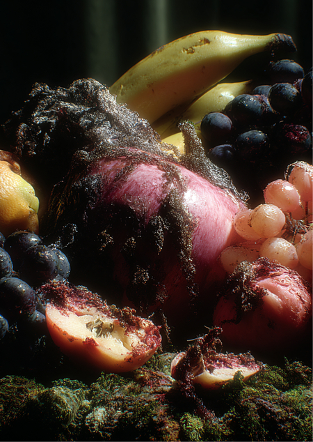 Короткий фильм/тайм-лапс, где традиционный натюрморт медленно разлагается: плоды покрываются плесенью, текстуры меняются, на поверхности появляются пятна гниения. Работа возвращает зрителю сам процесс времени — уже не как иллюстрацию морали, а как непосредственный визуальный опыт, заставляющий переживать переход от отвращения к созерцанию. Это продолжающаяся «ванитас-рефлексия», но в медиа-формате, где время — главный материал.