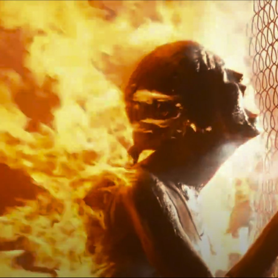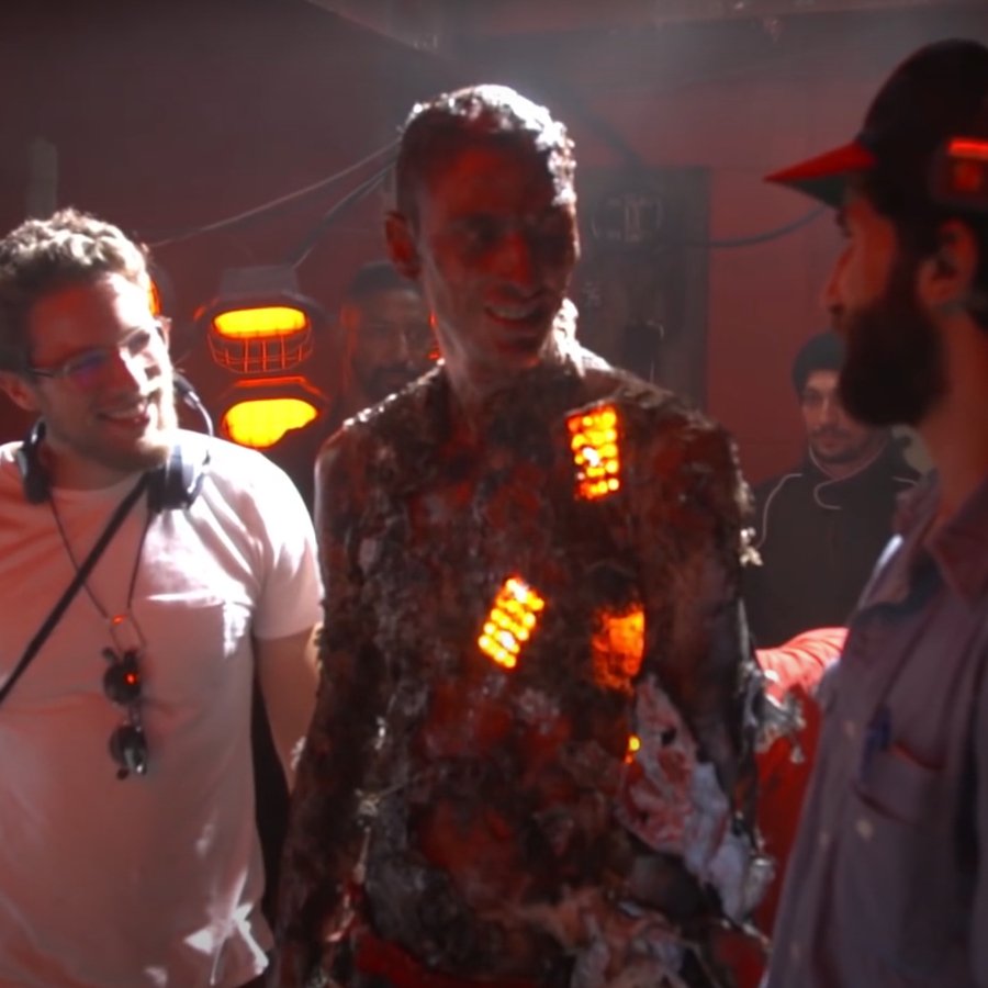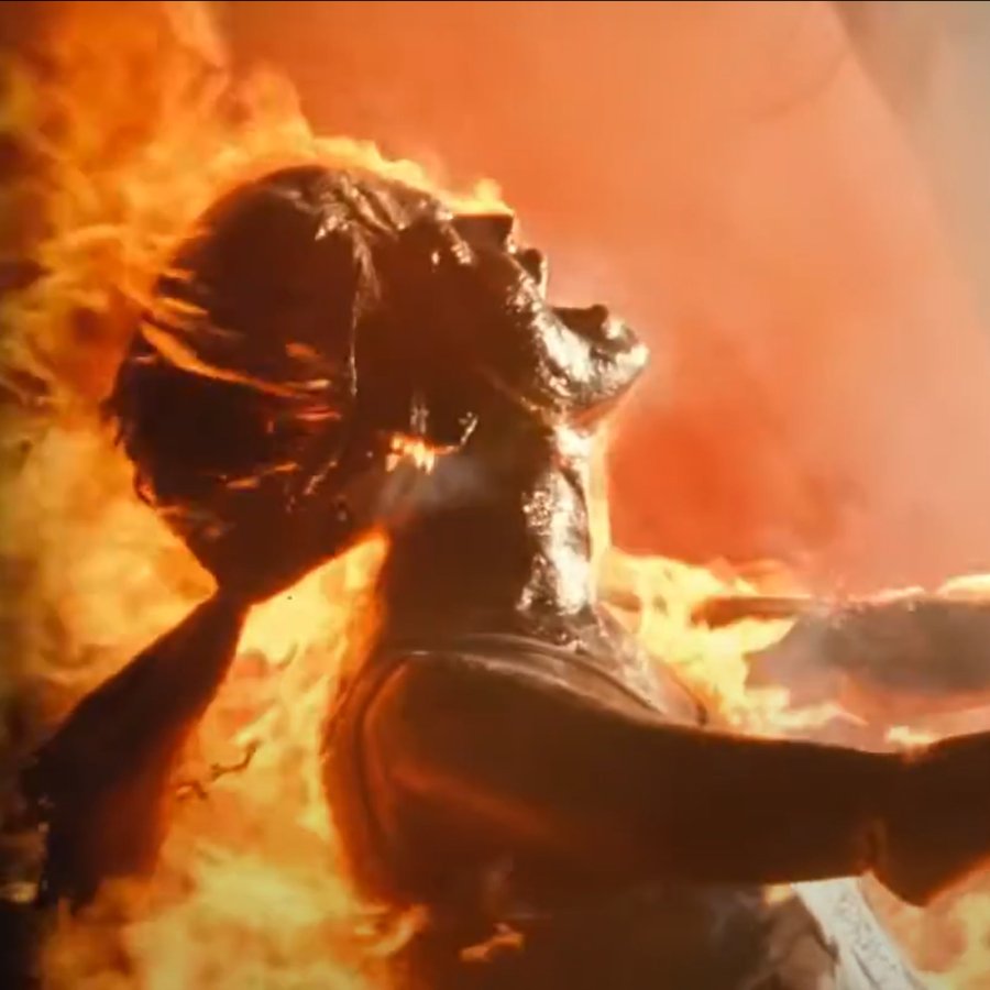 Улыбка (2022) / VFX супервайзеры: Юваль Леви, Вико Шарабани Демонстрация 3D элементов с наложением флюид-симуляции огня на персонажа