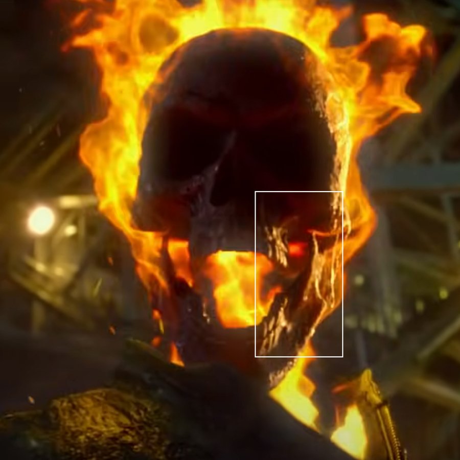 2011 / 2016-2017 В левом кадре свет падает на череп от стороннего освещения, в правом — от пламени