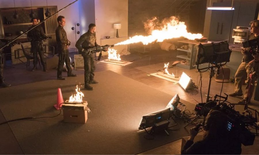 Практический огонь выглядит потрясающе, однако поджигание живого актёра — дорого, сложно и опасно. Живой огонь в настоящее время используется ограниченно, преимущественно для фоновых объектов.