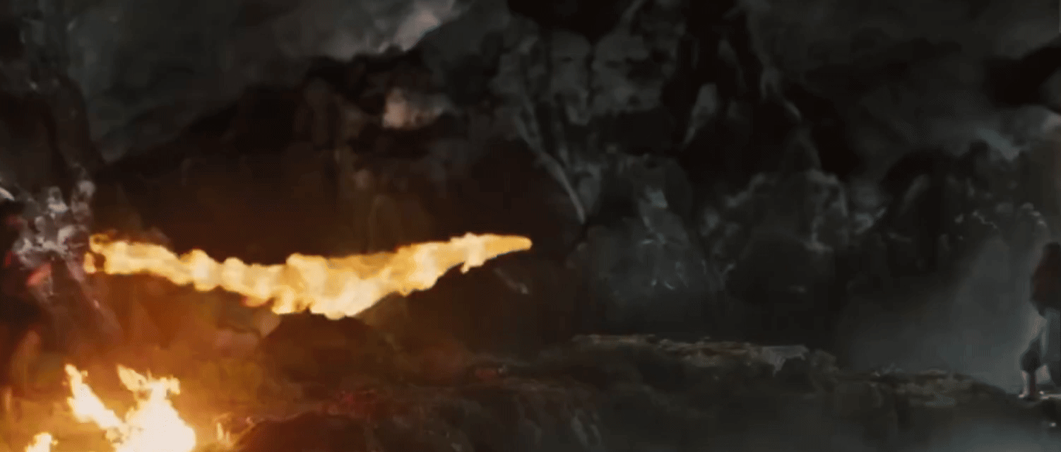 Живой огонь не даёт яркого света со стабильной яркостью, свет от него динамический, мерцающий. При наложении композингом для изображения света от огня использовались классические осветительные приборы: лампы и прожекторы. Имитирование такого поведения света этими приборами затруднено, что демонстрируется вышеназванным кадром.