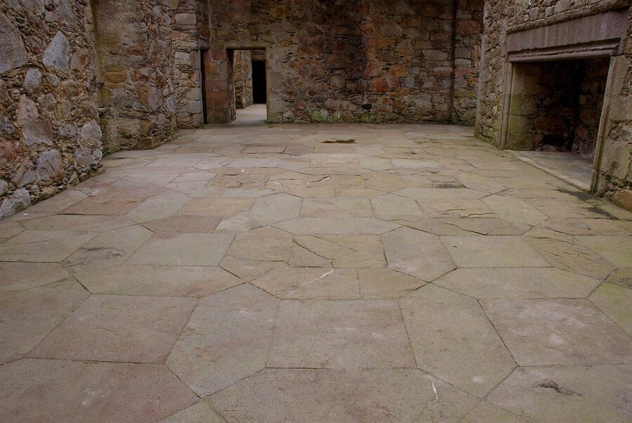 Каменные полы укладывались на подготовленное основание из песка и раствора.