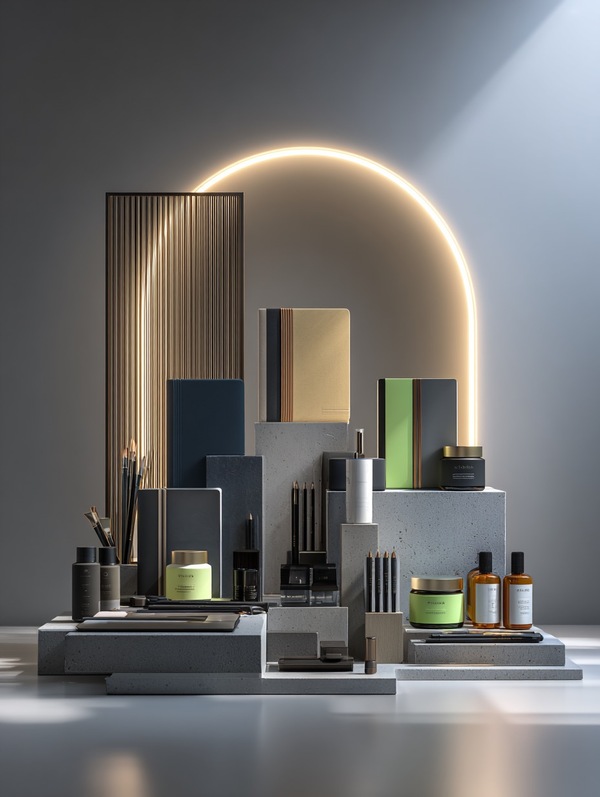 Scene: professional studio setup, soft diffused lighting, premium product photography aesthetic, focus on clarity, balance, and the tactile beauty of materials.