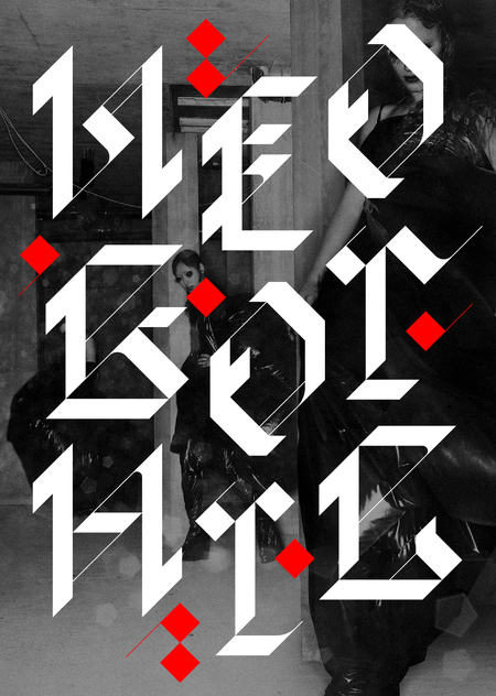 NEO GOTHIC — выставка, посвящённая тёмной загадочной вселенной фэшн-дизайнера Гарета Пью, где тела и силуэты превращаются в готические соборы будущего. Кастомный шрифт в стиле неоготики в айдентике продолжает этот жест: каждая буква становится маленьким архитектурным объектом, будто выточенным из самой тьмы.