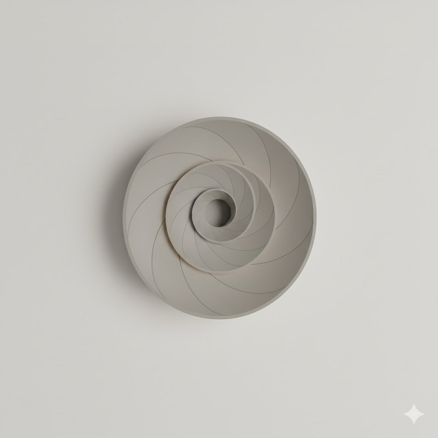 Светильник, вдохновленный идеальной спиральной структурой раковины Наутилуса. Символизирует математическую гармонию и вечность океанских форм. Свет, проходящий сквозь сегменты, создает эффект вихря и четкие, динамичные лучи.