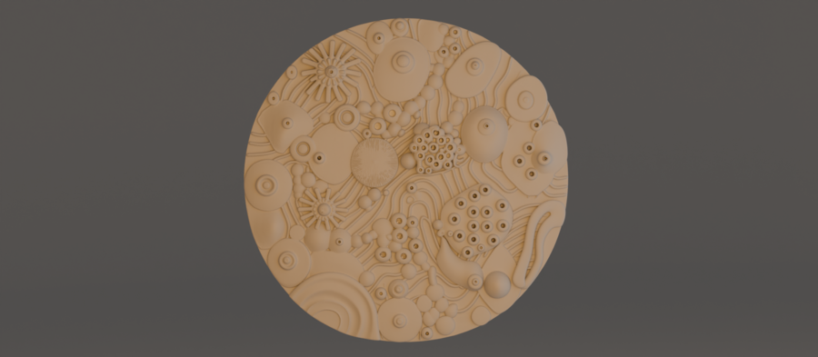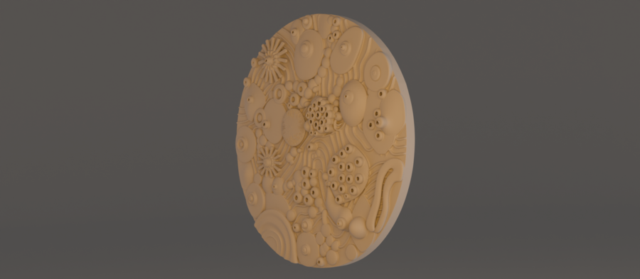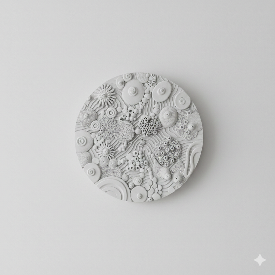 Круглый плафон, представляющий собой детализированный рельеф кораллового рифа и подводной флоры. Его свет имитирует яркий солнечный луч, пробивающийся сквозь толщу воды и освещающий живую текстуру морского дна.
