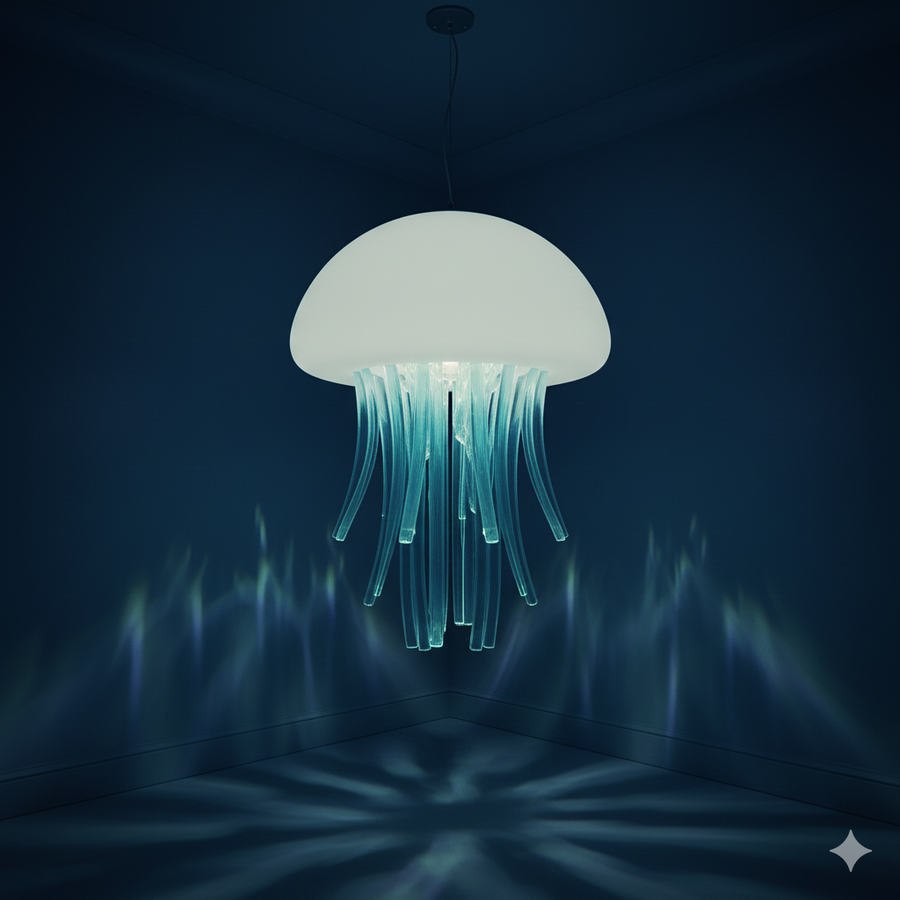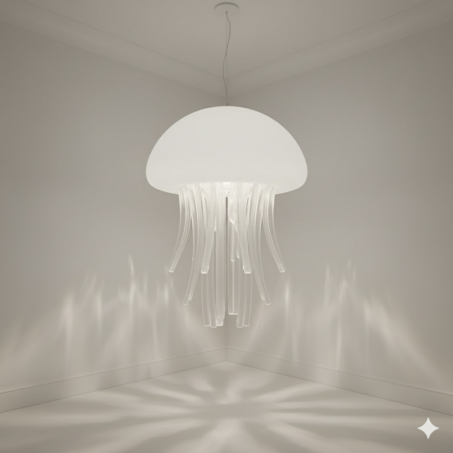 Изящный подвесной светильник, точно воспроизводящий форму купола и щупалец медузы. Создает мягкое, рассеянное и призрачное свечение, привнося в интерьер ощущение невесомости и подводного танца.