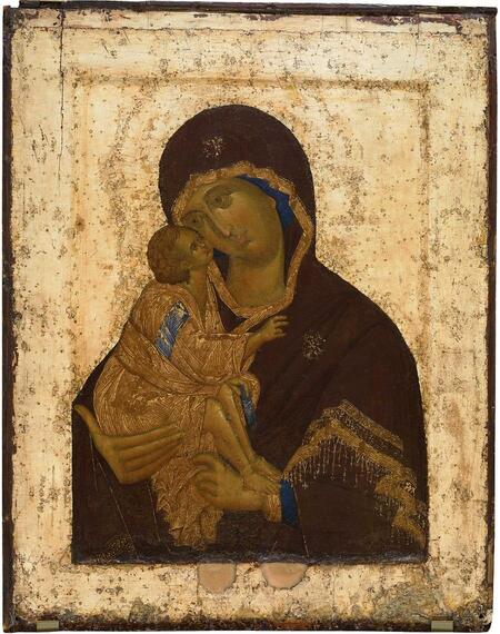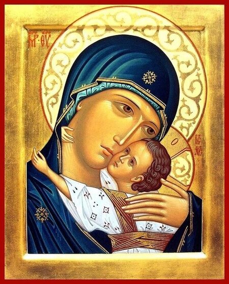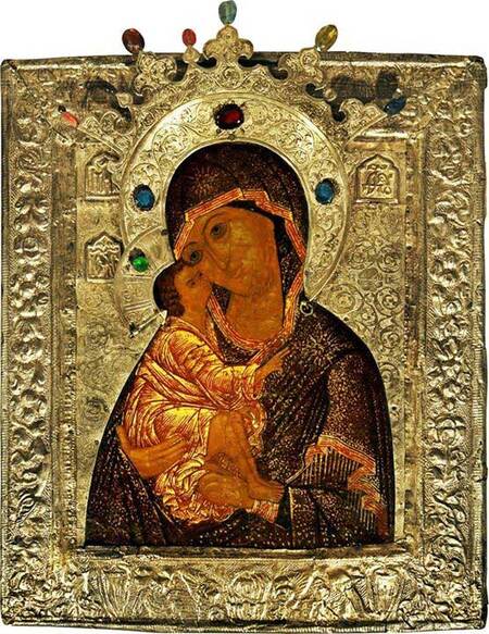 Одна из самых древних и почитаемых икон России, созданная в Византии в XII веке и привезённая в Киев, а затем во Владимир. Образ представляет собой тип Одигитрии — Богоматерь с Младенцем, который прижимается щекой к матери. Владимирская икона символизирует заступничество и защиту русского народа и считается чудотворной, особенно в периоды войн и народных бедствий.