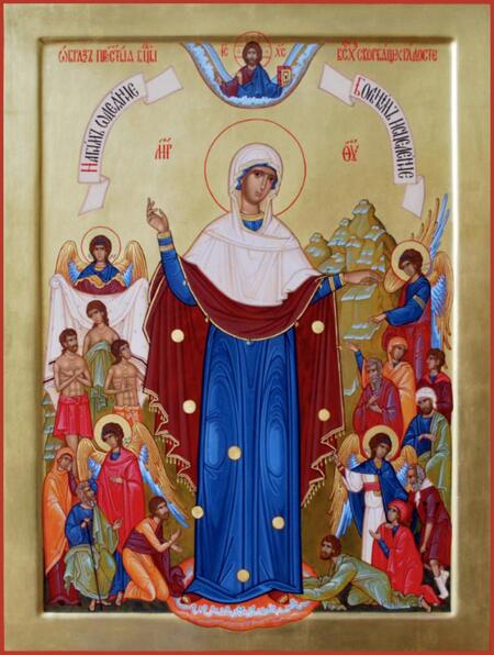 В православной традиции Богоматерь почитается как Непорочная Дева, через которую произошло воплощение Сына Божия, и поэтому она является посредницей между человеком и Богом.