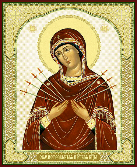 Известна также как «Умягчение злых сердец», отображает скорбящий лик Богоматери, из которого исходит семь мечей — символ скорбей и испытаний. Икона символизирует молитвенное заступничество и духовную силу.