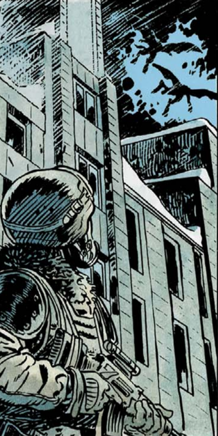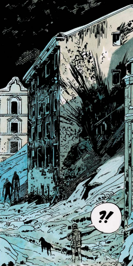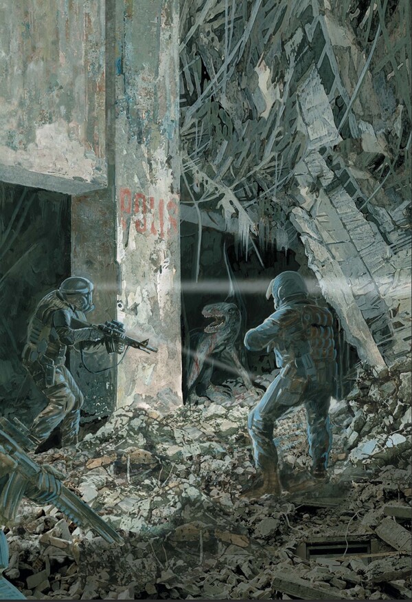 Дмитрий Глуховский, Петер Нуйтен, «Метро 2033» (графический роман), 2022 г. «Библиотекари» в тени на поверхности у ст. «Библиотека имени Ленина».