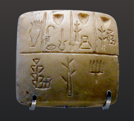 Протоклинопись — система протописьменности, возникшая в Месопотамии и в конечном итоге превратившаяся в раннюю клинопись, которая использовалась в регионе в раннединастический период. С течением времени шрифт медленно развивался, знаки менялись и сливались, около 2900 г. до н. э. появилась стандартная клинопись, используемая для записи шумерского языка. [8]