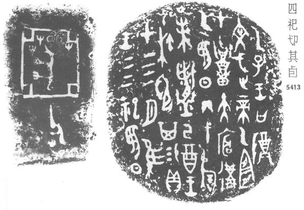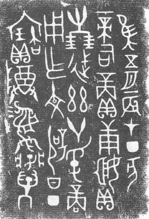 1. Надпись с сосуда Санчжун (商尊), датируемая ранним периодом Западной Чжоу (西周), обнаруженная в печи № 1 в Чанбэке (莊白). 2. Надпись на горшке Си си Бики ю