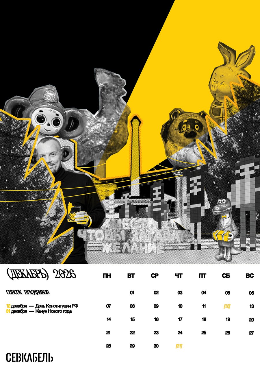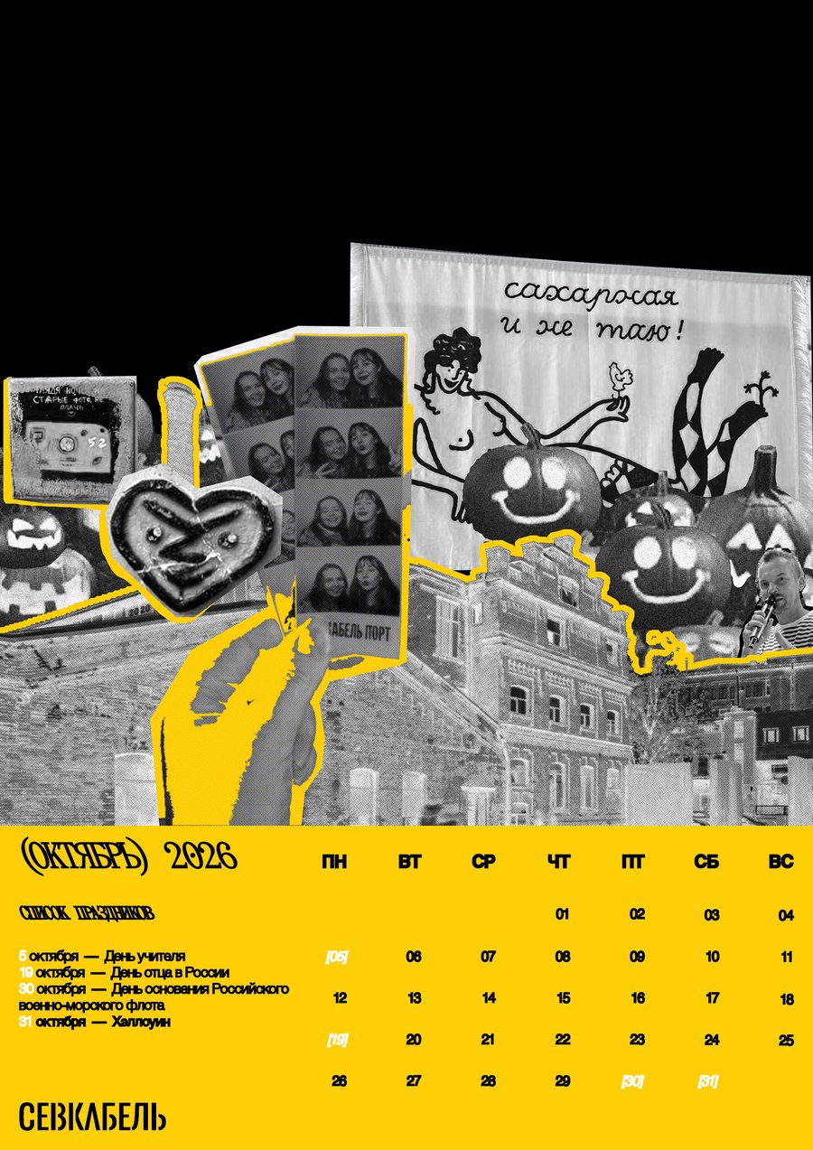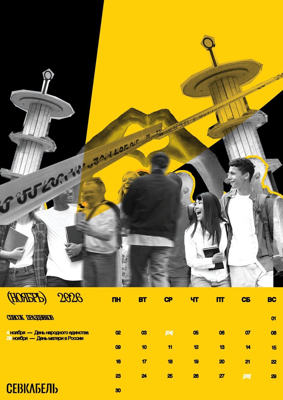 Классический календарь, который совмещает в себе строгость как отсылку на индустриальное прошлое порта и дерзкость как отсылку на Высшую Школу Экономики. Календарь выполнен в формате А2, предназначен для подарков партнерам и резидентам Севкабель порта