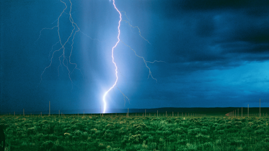 Walter de Maria — «Lightning Field» (1977) — это инсталляция в Нью-Мексико: на площади длиной около 1 км установлены 400 металлических столбов. Художник создал условия для взаимодействия с природой: во время гроз молнии ударяют в столбы, а свет и погода меняют восприятие работы каждый день.