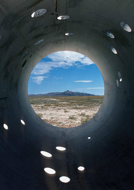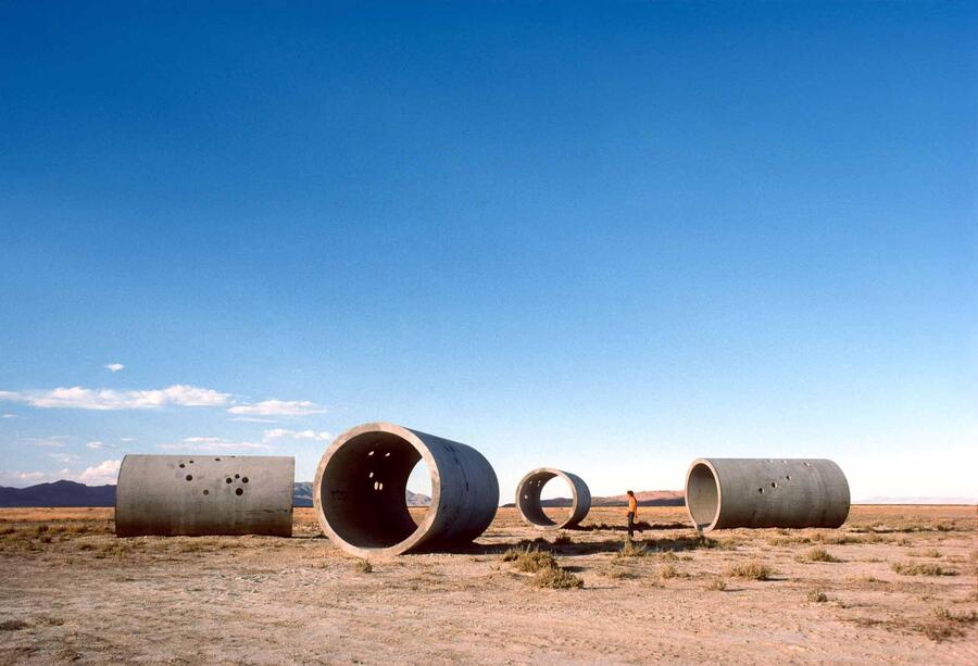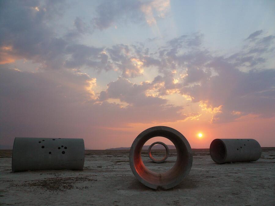 Nancy Holt — «Sun Tunnels» (1976) — одна из главных работ лэнд-арта в пустыне Юты. Это четыре больших бетонных цилиндра, расположенных крест-образно и ориентированных по сторонам света. В каждом цилиндре есть отверстия, вырезанные по узорам реальных созвездий. Работа показывает, как свет и время меняют пространство. В дни солнцестояний солнце встаёт и садится строго в линии тоннелей, а внутри появляются яркие световые эффекты. В разное время года отверстия создают на стенах рисунки «звёзд». Это среда, которая оживает благодаря движению солнца и природному ритму.