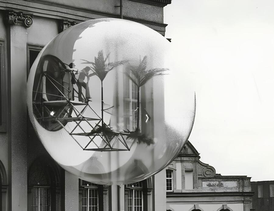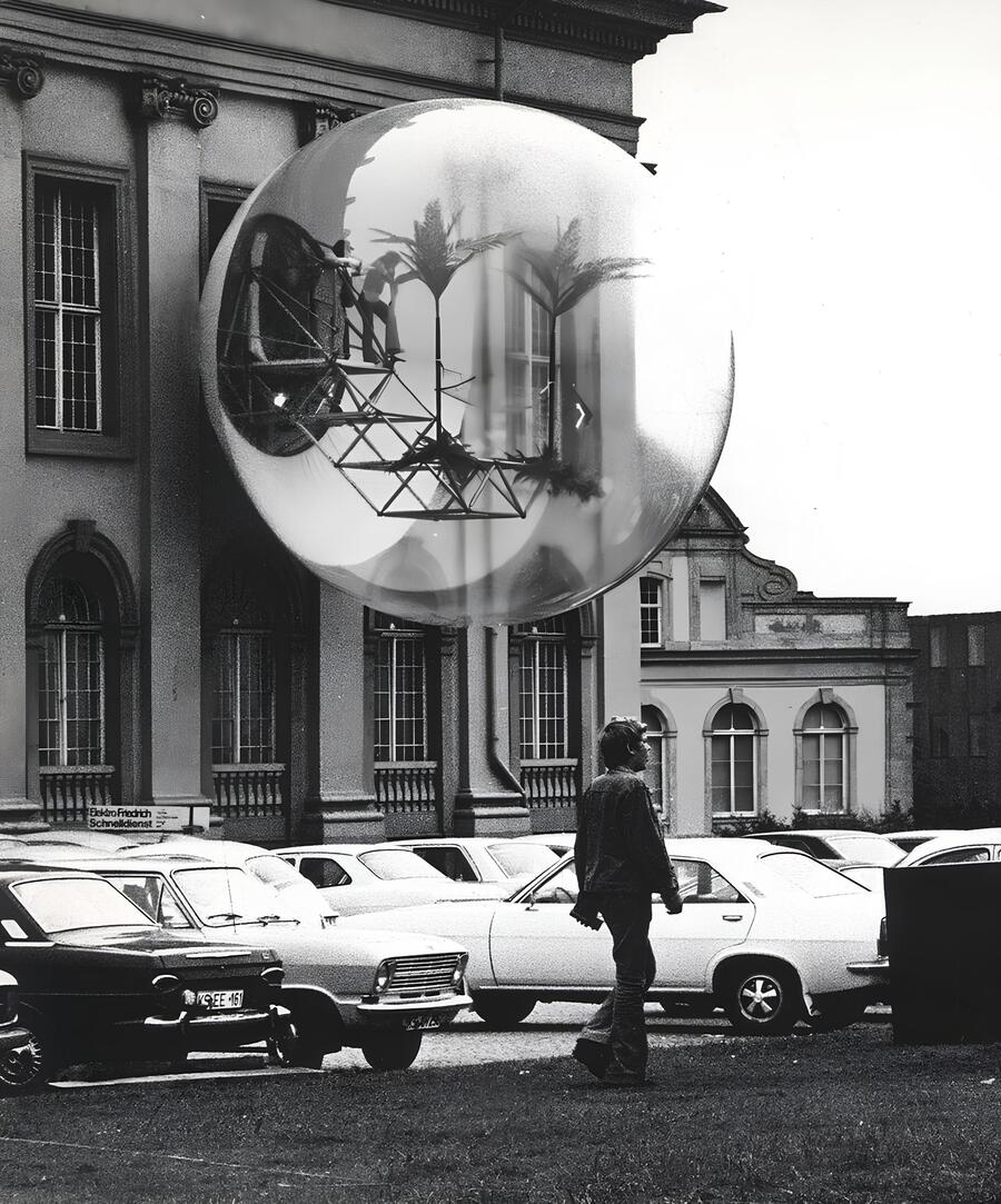 «Oasis No.7» — это надувная полупрозрачная сфера, прикреплённая к фасаду здания, которую австрийская группа Haus-Rucker-Co создала как эксперимент с «живым фрагментом» городской среды. Сфера выглядела как органический пузырь, вырастающий из архитектуры, и становилась временным «живым карманом» внутри плотной городской ткани.