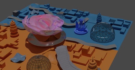 Включает в себя: — центр резонаторов, окруженный самими поющими башнями — жилые и административные районы
