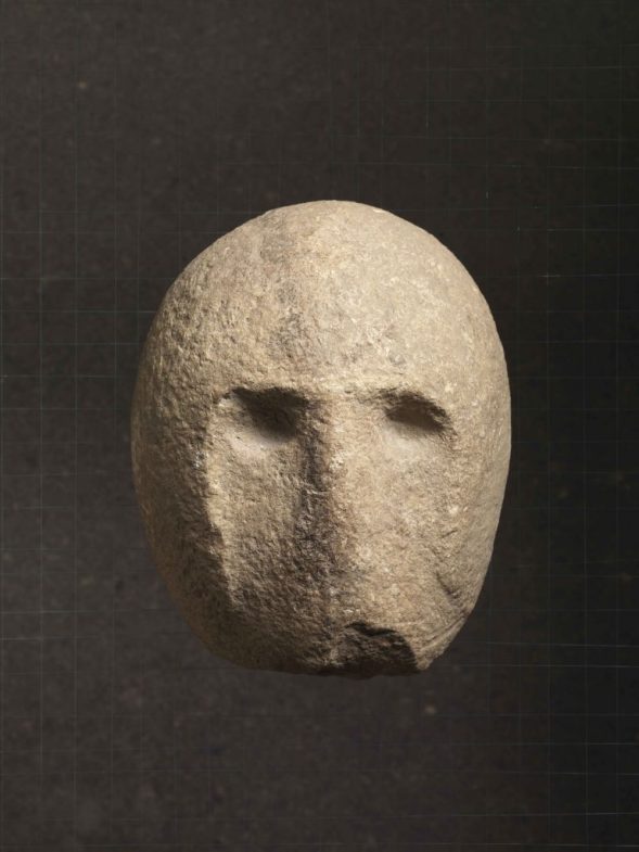 Примеры масок эпохи Неолита, найденных в иудейских пустынях. Музей Израиля в Иерусалиме.