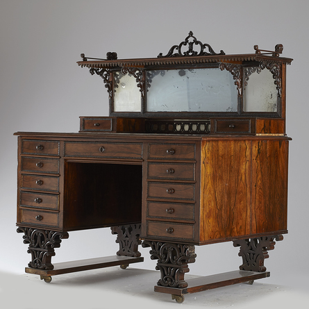 Столы конца 19 века отличались массивной конструкцией и изобилием мест для хранения, предназначенных для книг и бумаги.
