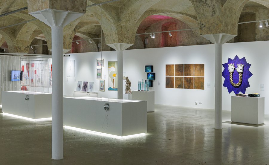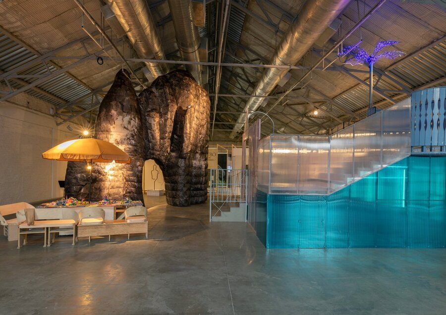 Выставка «Это было со мной» | Вид экспозиции в Цехе Белого с работой Ирины Кориной «Коворкинг-зона „У чёрной скалы“».