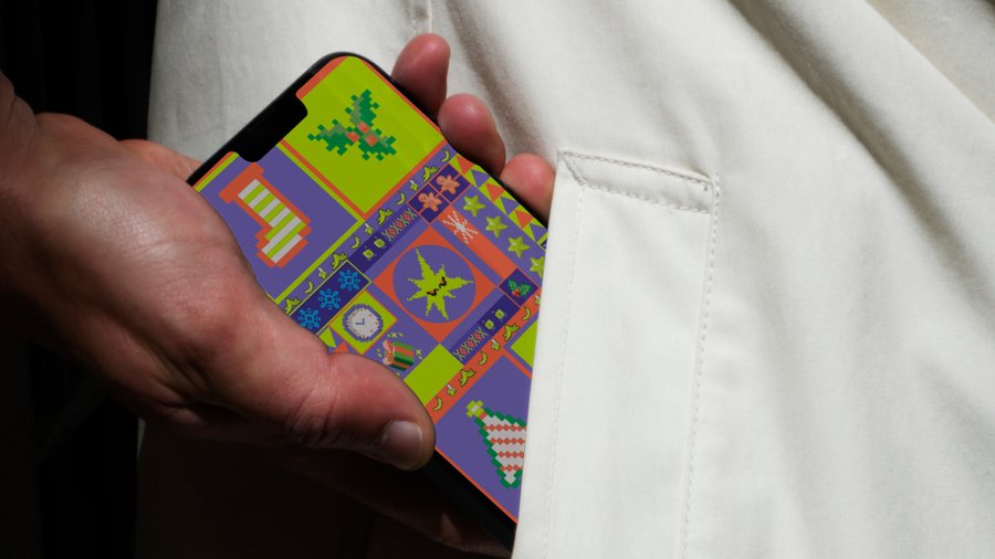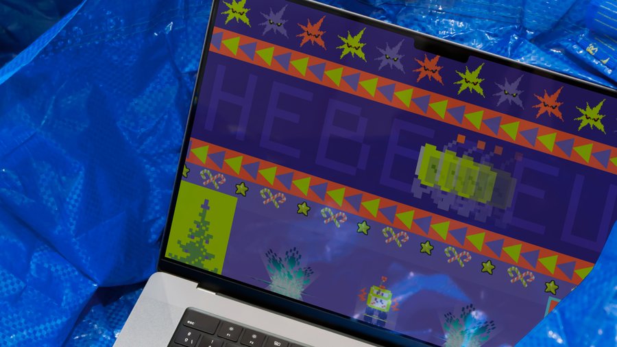 Концепция плаката для «Невезец»: весёлый пиксельный коллаж, отражающий предновогоднюю суету. Бананы — символ мелких «невезений», снежинки и звёзды — праздничной суеты, а улыбающаяся вспышка в центре — наш подход: превращаем хаос в порядок! «Невезец» справится с любыми предновогодними хлопотами — доверьте нам свои заботы!