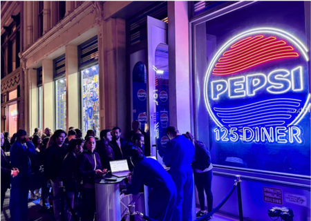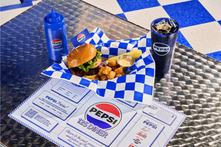 Pepsi отмечает своё 125-летие кампанией (125 Years), в рамках которой был создан поп-ап-ресторан «Pepsi Diner», стилизованный под классический американский обеденный зал середины XX века. В оформлении используются неоновые вывески, хромированные детали, виниловые сиденья, ретро-меню и рекламные материалы, отсылающие к рекламе 50-60-х годов. Этот дизайн создаёт атмосферу «золотого века поп-культуры». Сочетание ретро-шарма и футуристического задора делает закусочную Pepsi 125 Diner уникальной смесью прошлого, настоящего и будущего.