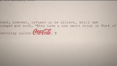 В рекламных материалах фрагменты литературных текстов используются в качестве визуальных элементов. Бренд «встраивается» в историю через реальные цитаты, отрывки и типографику классических изданий. Coca-Cola обращается к культурным архивам, где она представлена как маркер времени.