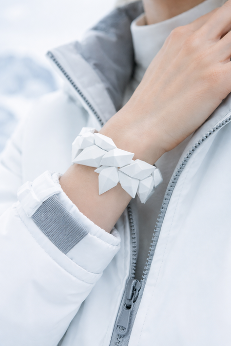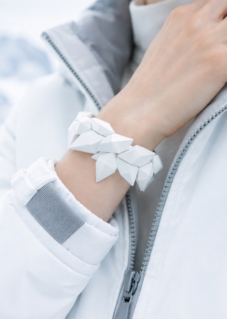 Украшения, вдохновленные структурами льда и снега, объединяющие минимализм скандинавского дизайна с функциональностью спортивной экипировки. Каждое изделие отражает идею «застывшего движения»