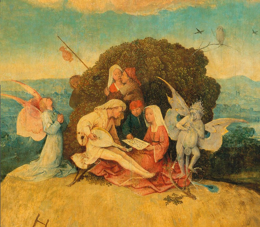 На возу расположились музыканты. В руках у них лютня и дудка — так мастер завуалированно изображает половые органы. Из этого следует, что музыка в работах Босха — символ греховного чрезмерного наслаждения и похоти, которые отвлекают человека от духовности.