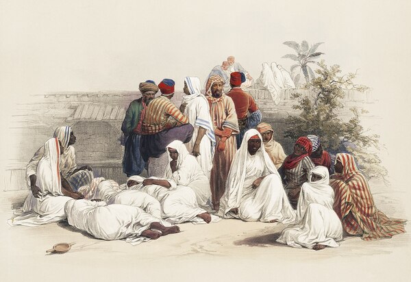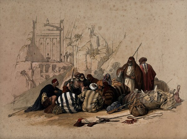 Дэвид Робертс «Группа верующих на месте строительства храма» из акварельной серии «Святая земля, Сирия, Идумея, Аравия, Египет и Нубия»