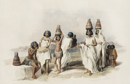 Дэвид Робертс «Нубийские женщины в Корти» и «Пирамиды в Гизе, со стороны Нила» из акварельной серии «Святая земля, Сирия, Идумея, Аравия, Египет и Нубия»