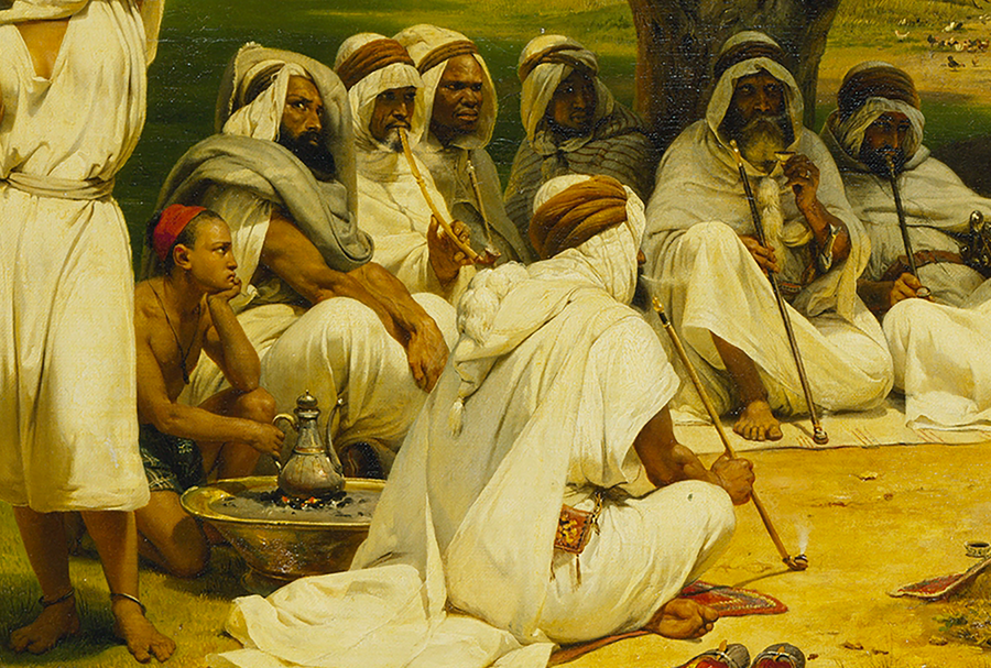 Картина «Арабский сказочник», написанная французским художником Орасом Верне после одного из его алжирских путешествий, содержит множество деталей, демонстрирующих европейское стереотипное восприятие Востока.