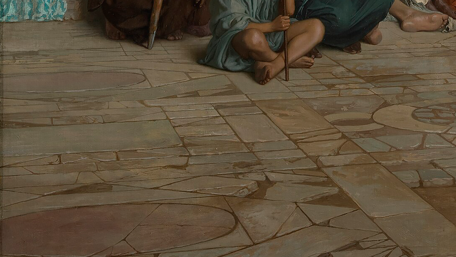 В картине «Заклинатель змей» художник кропотливо прописывает потёртую плитку и расколотую брусчатку — символы восточной лени [6].