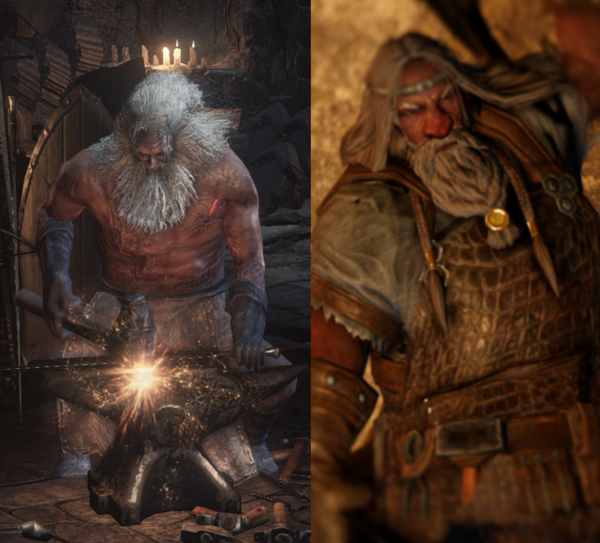 Оба кузнеца вполне вписываются в рамки прообраза из манги — Кузнеца Годо, выковавшего «Убийцу Драконов», прославившего Гатса. Как и Андрэ, кузнец всегда готов прийти на помощь и, подобно МакДаффу, его завораживает пламя в кузнице.
