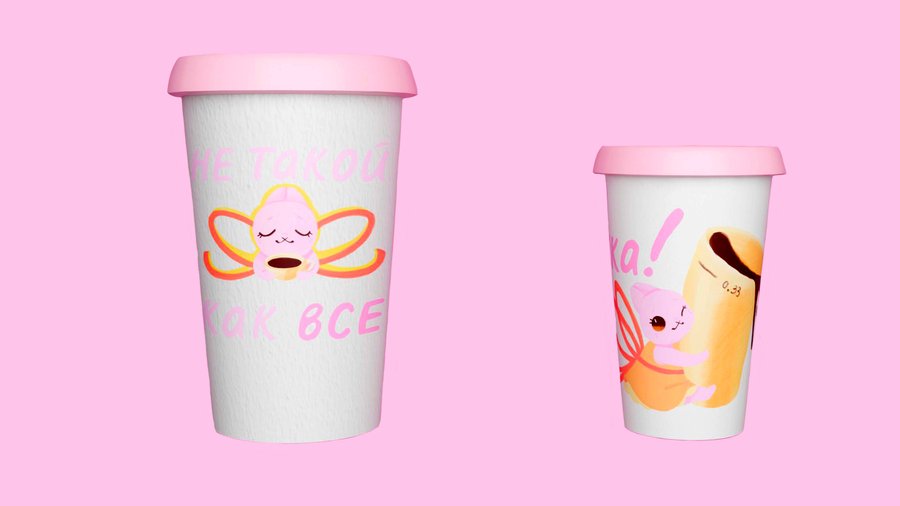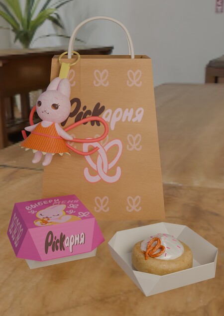 Для бренда были разработаны дизайны пакетов, стаканчиков для напитков, коробки для булочек, пример десерта, а также маскот и мерч в виде брелка.