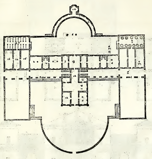 1-План виллы. Чертёж О. Бертотти-Скамоцци. 1778; 2 — Пропорционирование плана