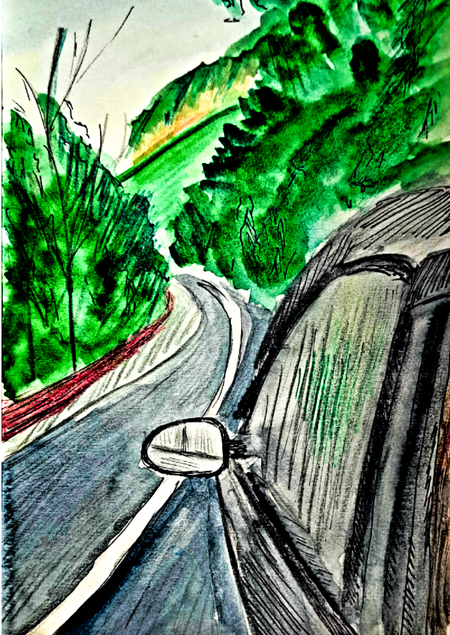 Работа представляет из себя запоминающиеся моменты из моего путешествия. Изображен путь на машине вдоль южного побережья Крыма. Мы посетили некоторые города и достопримечательности, которые я и решила нарисовать. В моей работе важна эмоциональность, так как-то, что я видела было очень красивым и запоминающимся.