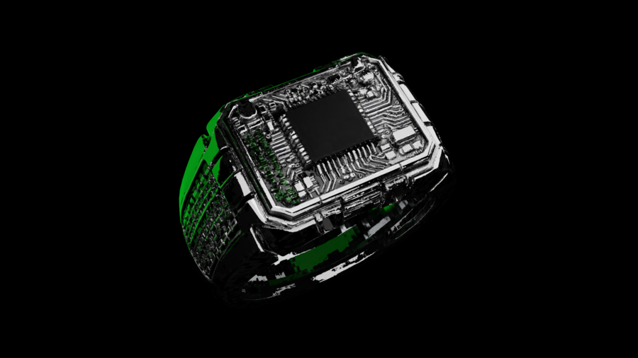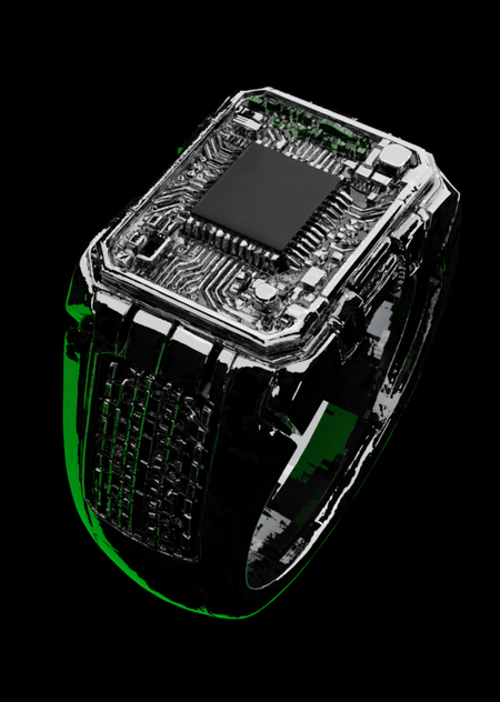 Изделие: Массивное серебряное кольцо с декоративной микросхемой