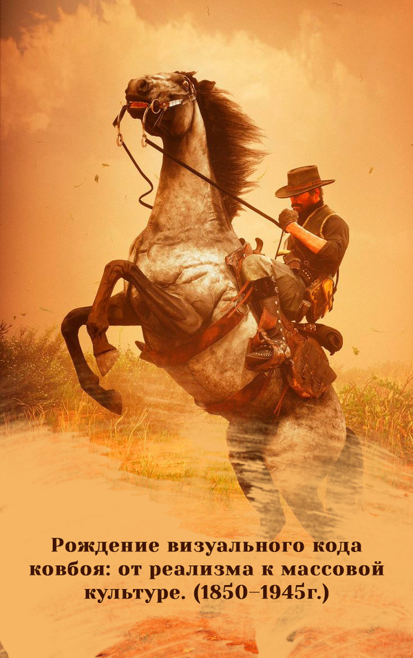 Во время работы над этим визуальным исследованием, мне удалось рассмотреть, как эволюция визуального образа ковбоя показывает, как реальный трудовой тип превращается в культурный архетип, способный влиять на самоощущение нации. Реалистические изображения фиксируют ковбоя как работника фронтира: человека, формирующего экономику Запада физическим трудом, коллективной дисциплиной и выносливостью.