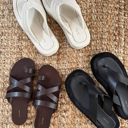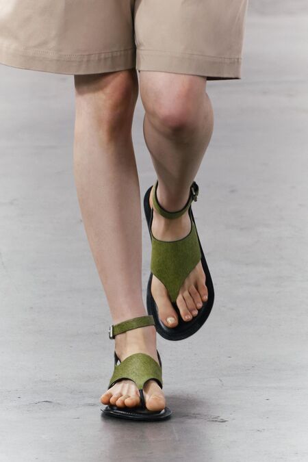 Бренд The Row в своих коллекциях переосмысливает простые ремешковые формы, превращая их в лаконичную обувь для «повседневного люкса» — плоскую подошву, тонкие ремешки, натуральные материалы.