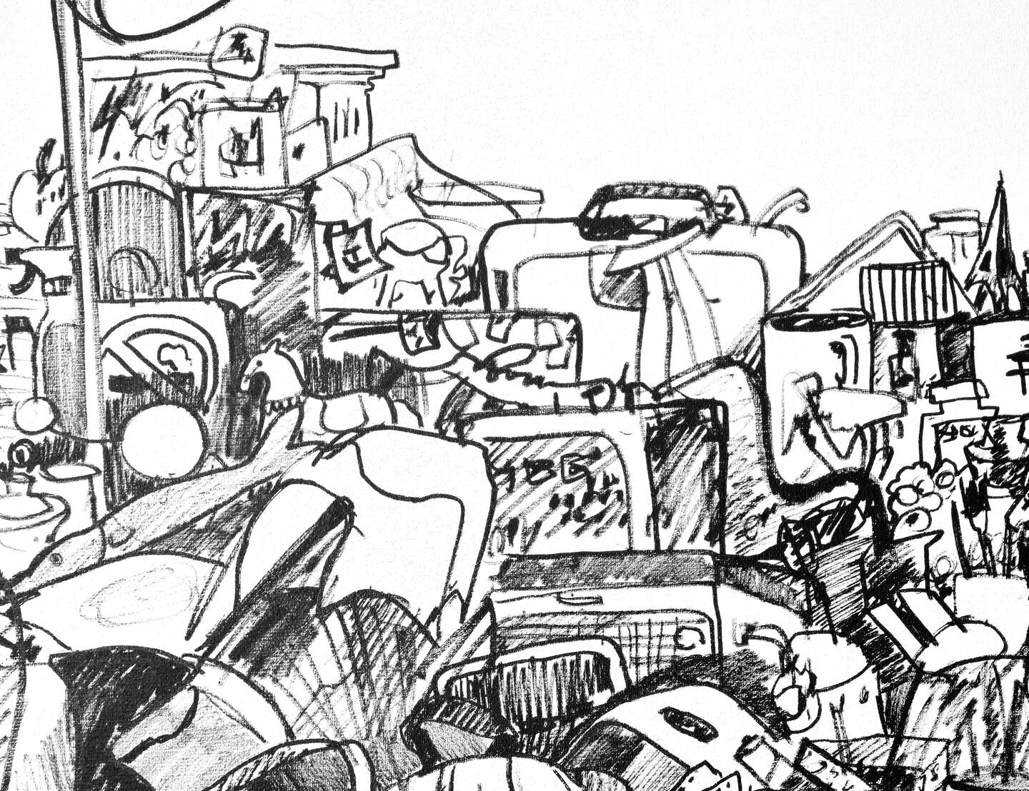 Бардак как внутренний пейзаж — это визуальное размышление о том, как внешний хаос проникает внутрь человека и становится частью его ментального и эмоционального ландшафта. В голове бардак уже не лежит слоями, как в археологическом раскопе, а дрейфует, оседая внутри.