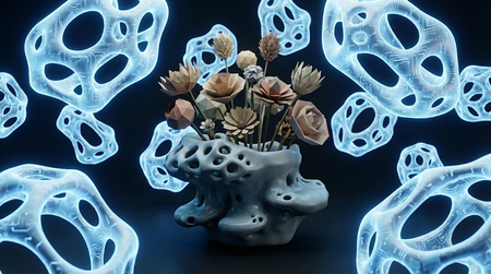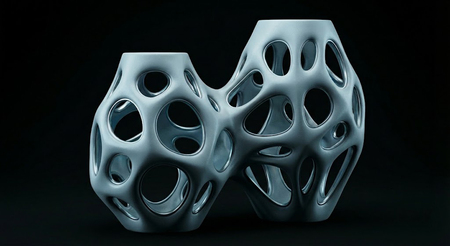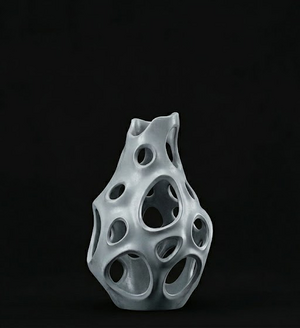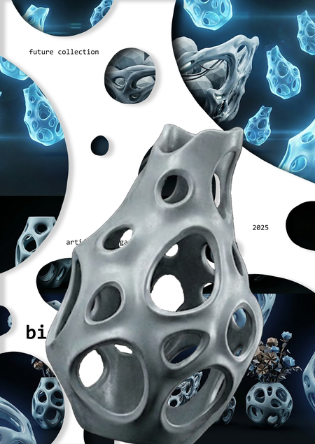Эти вазы — органический киберпанк. В отличие от классического «металлического» панка, здесь доминирует эстетика био-дизайна. Вазы выглядят как артефакты из лабораторий будущего, где нейросети управляют ростом костной и хрящевой ткани. Это «живой пластик», который застыл в моменте идеальной мутации.