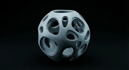 Все объекты серии объединены структурой, напоминающей пористую костную ткань Хаотичные отверстия — это не просто декор, а имитация биологических каналов для обмена питательными веществами или фильтрации токсичного воздуха мегаполиса. Матовая поверхность серого цвета имитирует биополимеры, армированные углеродными нанотрубками.