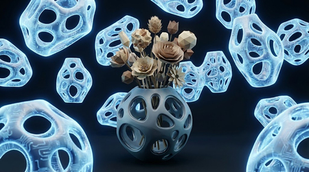 В Hunyuan 3D я использовал последнюю доступную версию нейросети 3.0 и настроил сетку моделей на 50 000 полигонов. Получившиеся вазы я располагал в Blender для создания hi-res рендеров через движок Cycles.