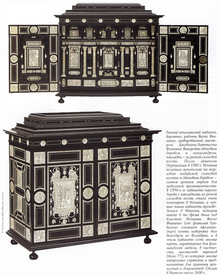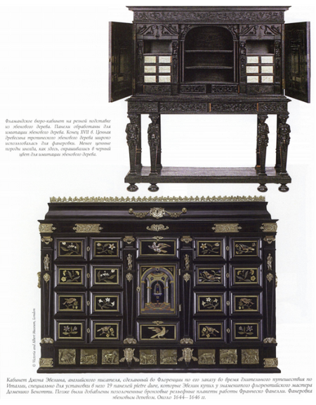 Кабинеты сами по себе были произведением искусства. Изящная работа с деревом, гравировка, различные материалы. Позже они и сами стали объектами коллекционирования.