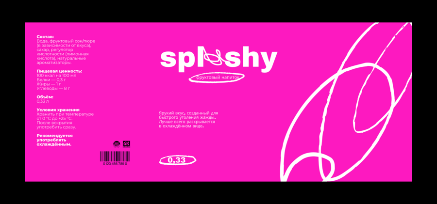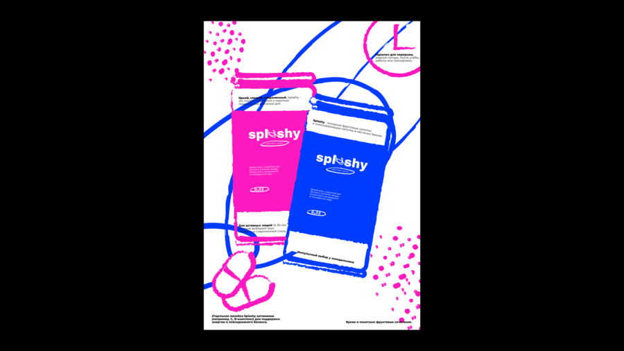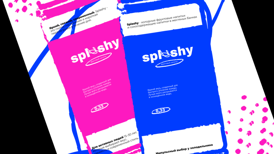 Splashy — это бренд холодных соков и напитков в жестяных банках, созданный для современного городского ритма. Бренд строится вокруг идеи мгновенного освежения и эмоционального переключения.